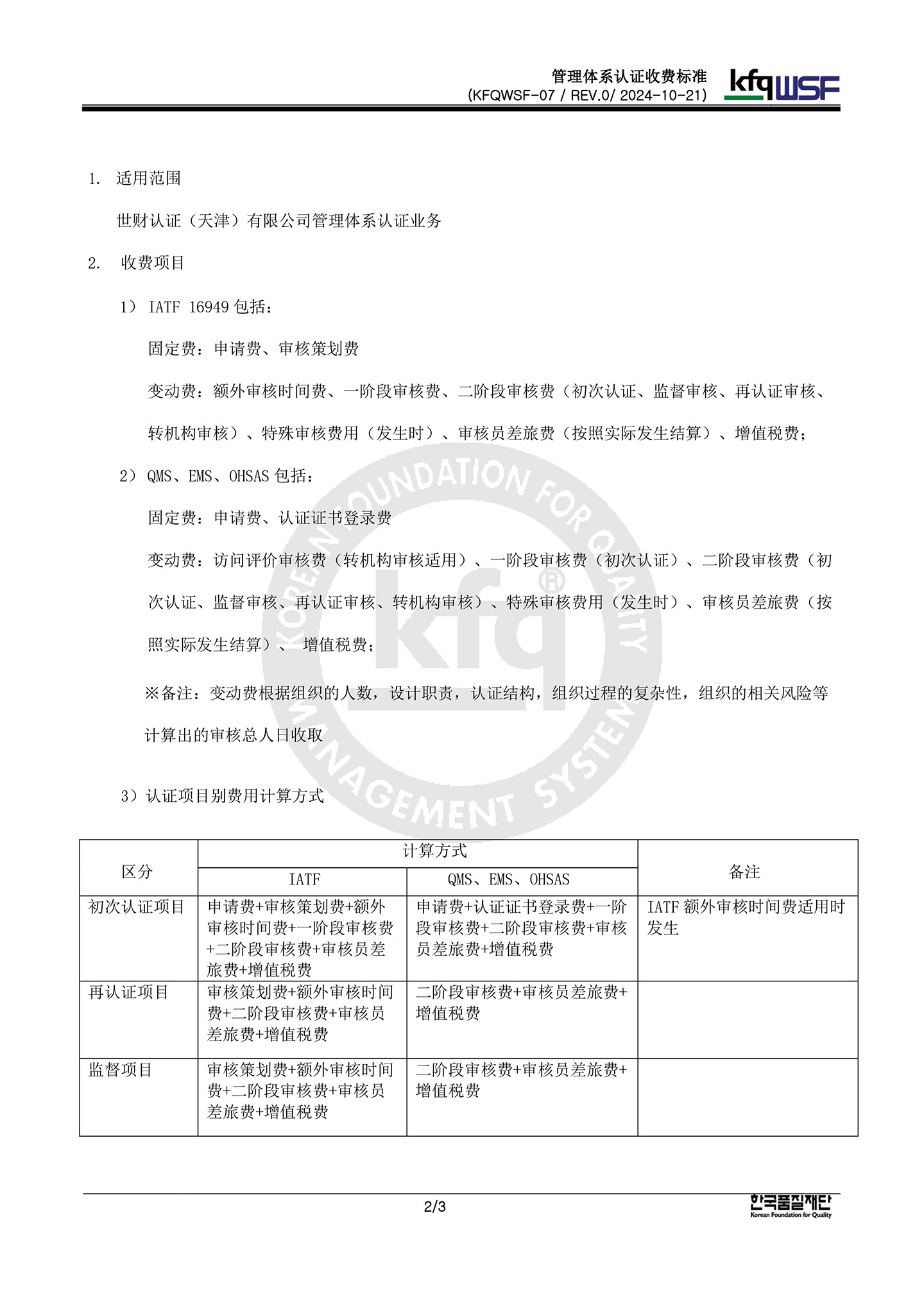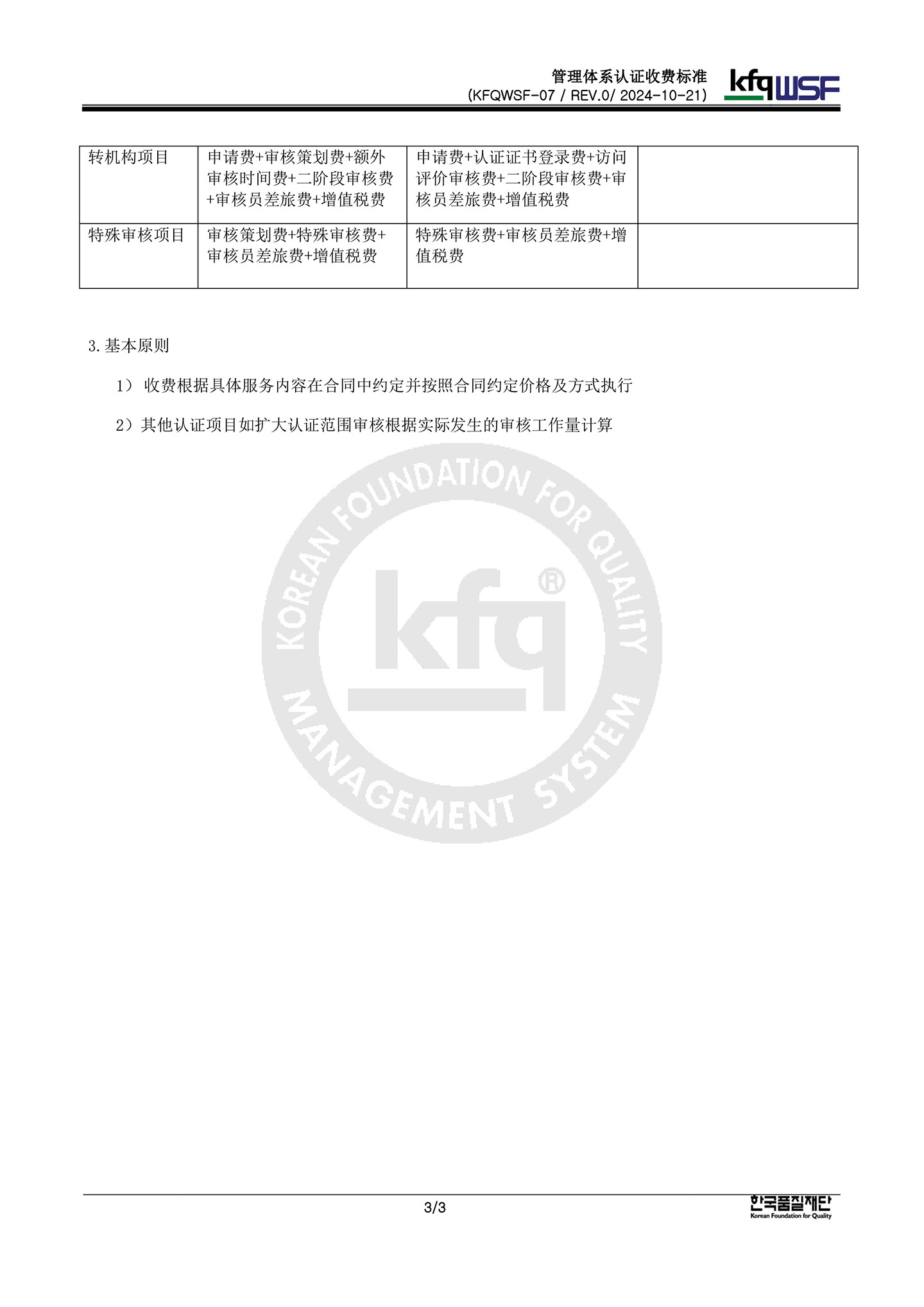 Certification Fee Standard